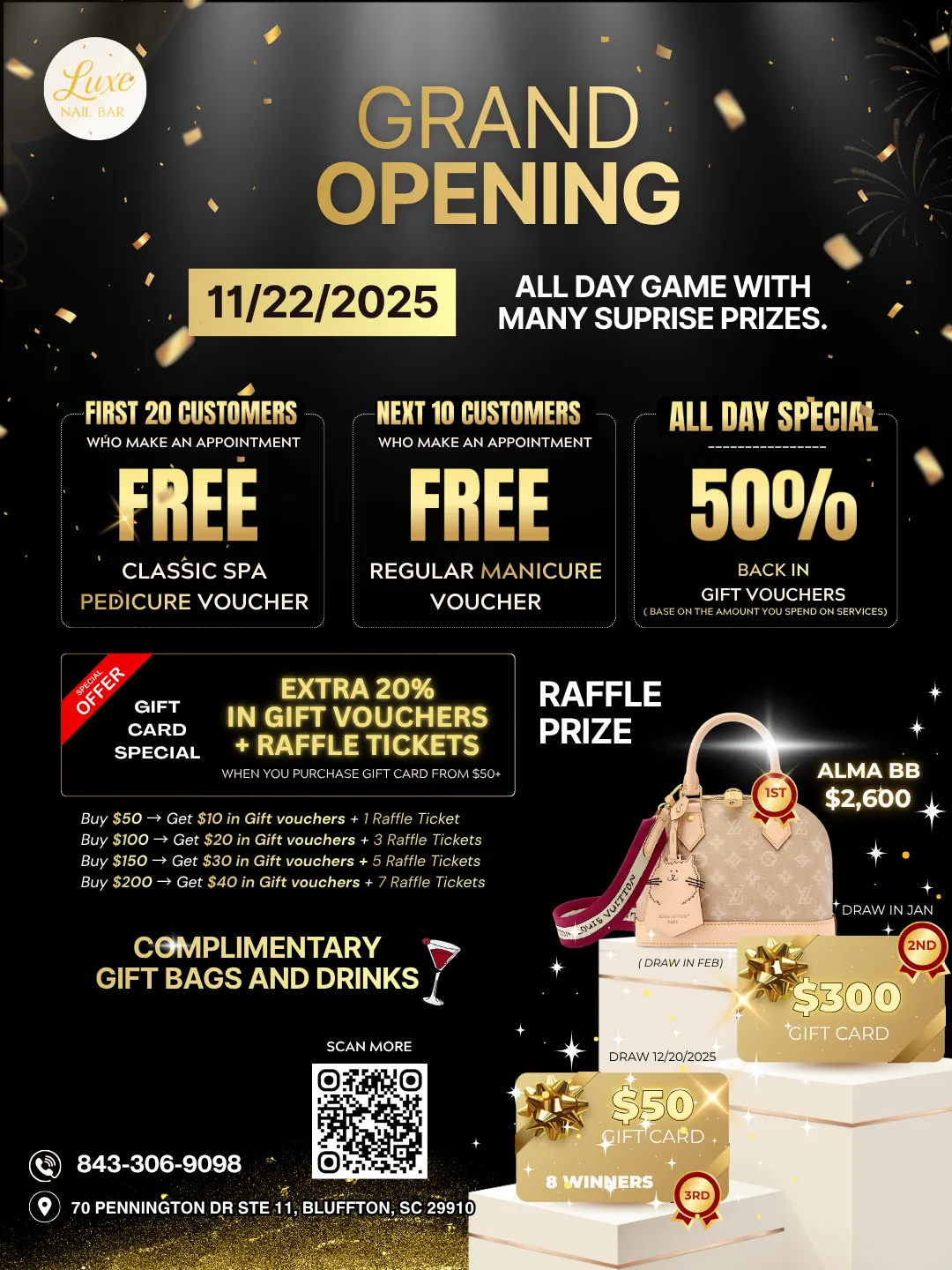 - NEXT 10 customers who make an appointment → FREE Regular Manicure voucher.